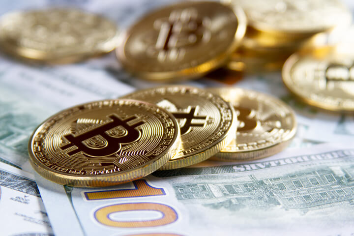 cryptocurrency blockchain dollar u.s. piles bills 100 crypto bitcoins
