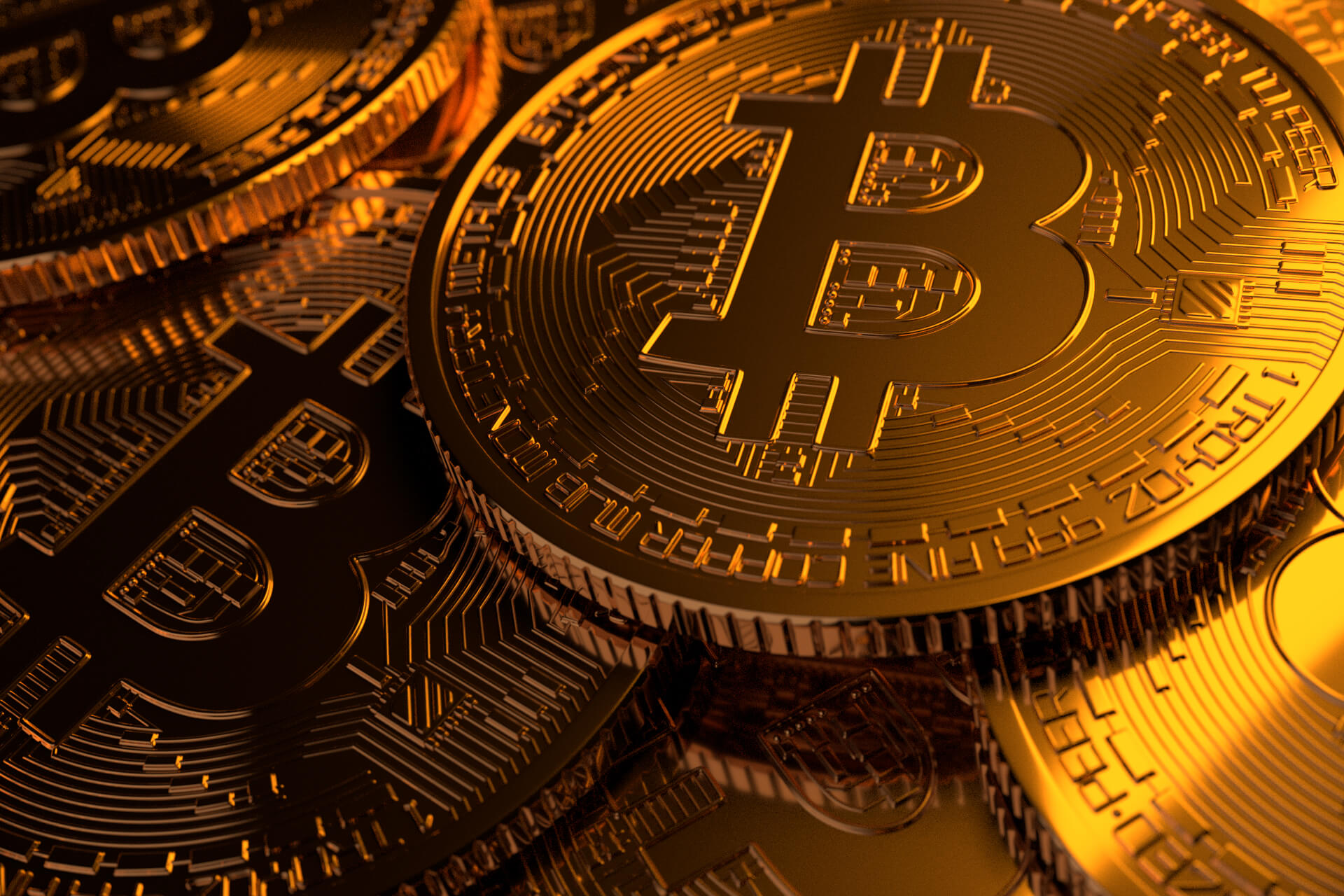 pile bitcoins contrasting lighting gold scattered crypto blockchain light cryptocurrency