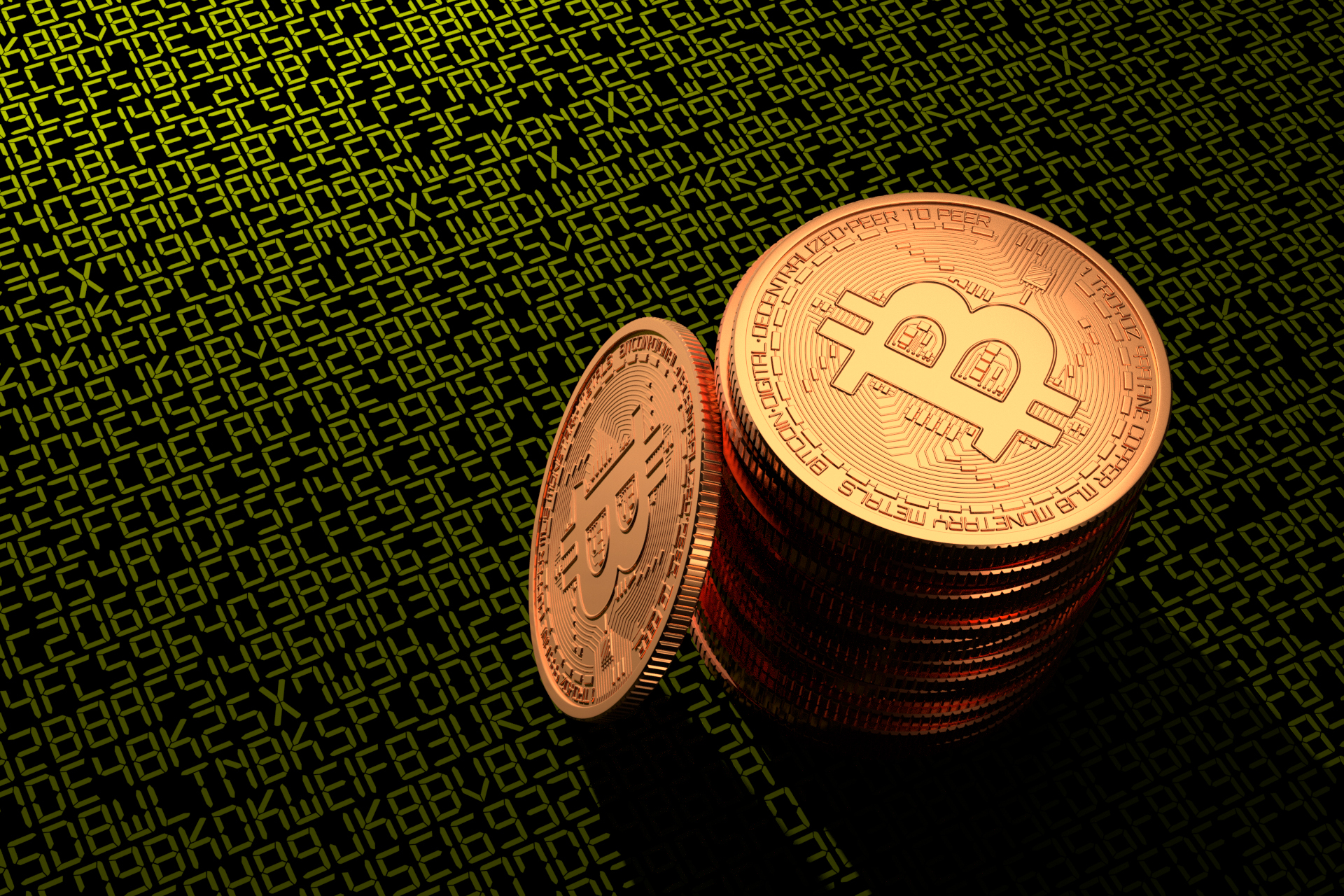 bitcoins green dark cryptocurrency digital key stack illuminated code crypto blockchain