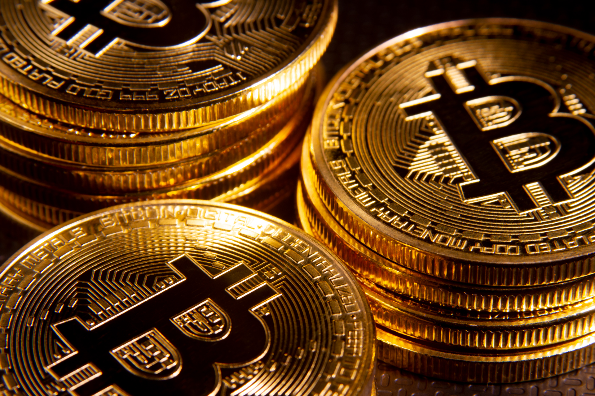 Three stacks of Bitcoins