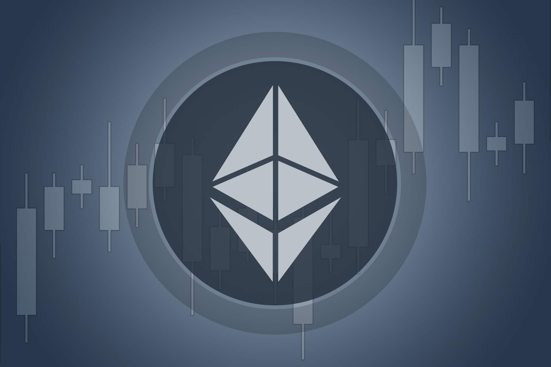 Ethereum cryptocurrency token overlaid on stock price candlestick chart