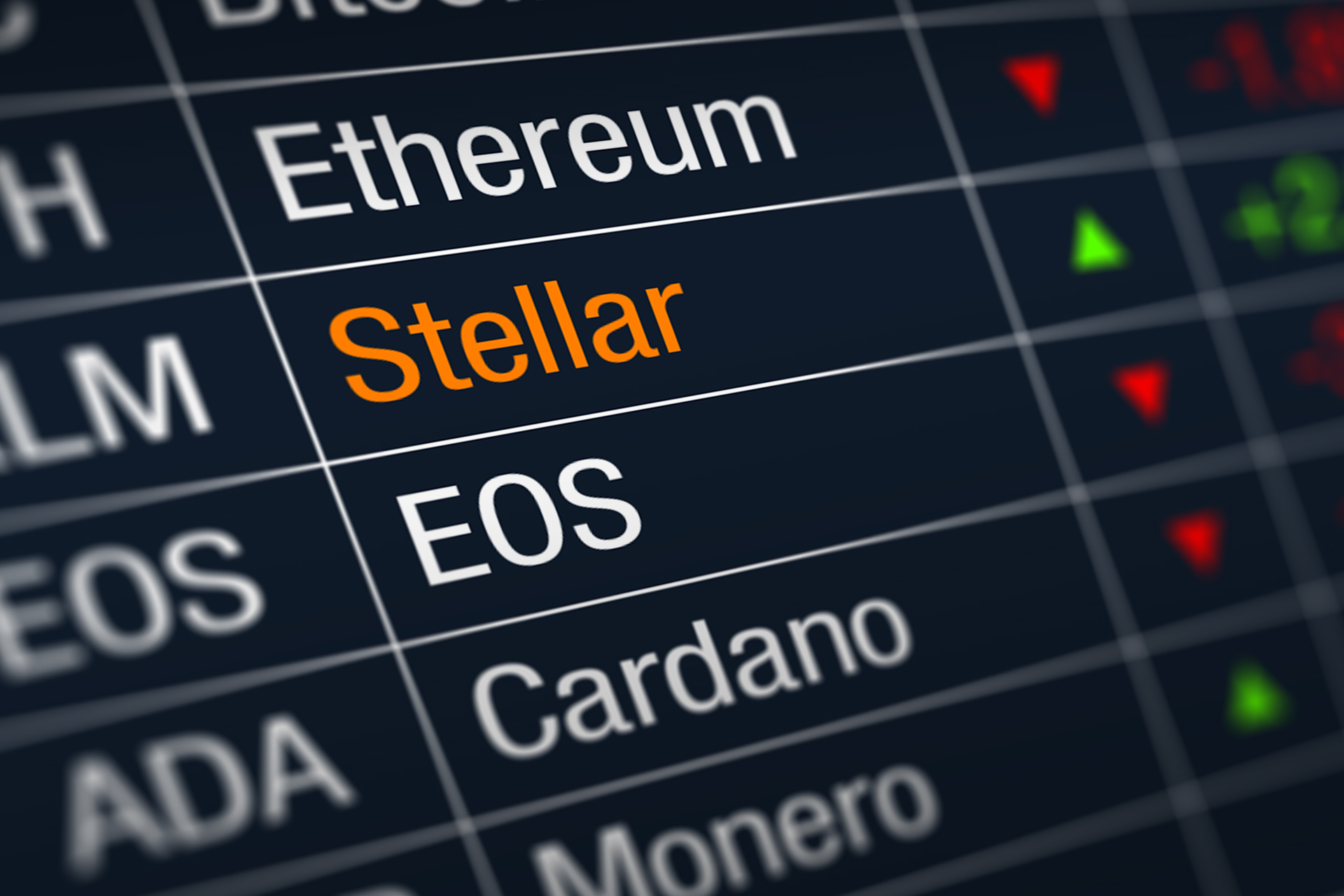 Stock ticker chart showing cryptocurrency prices with Stellar price increase highlighted