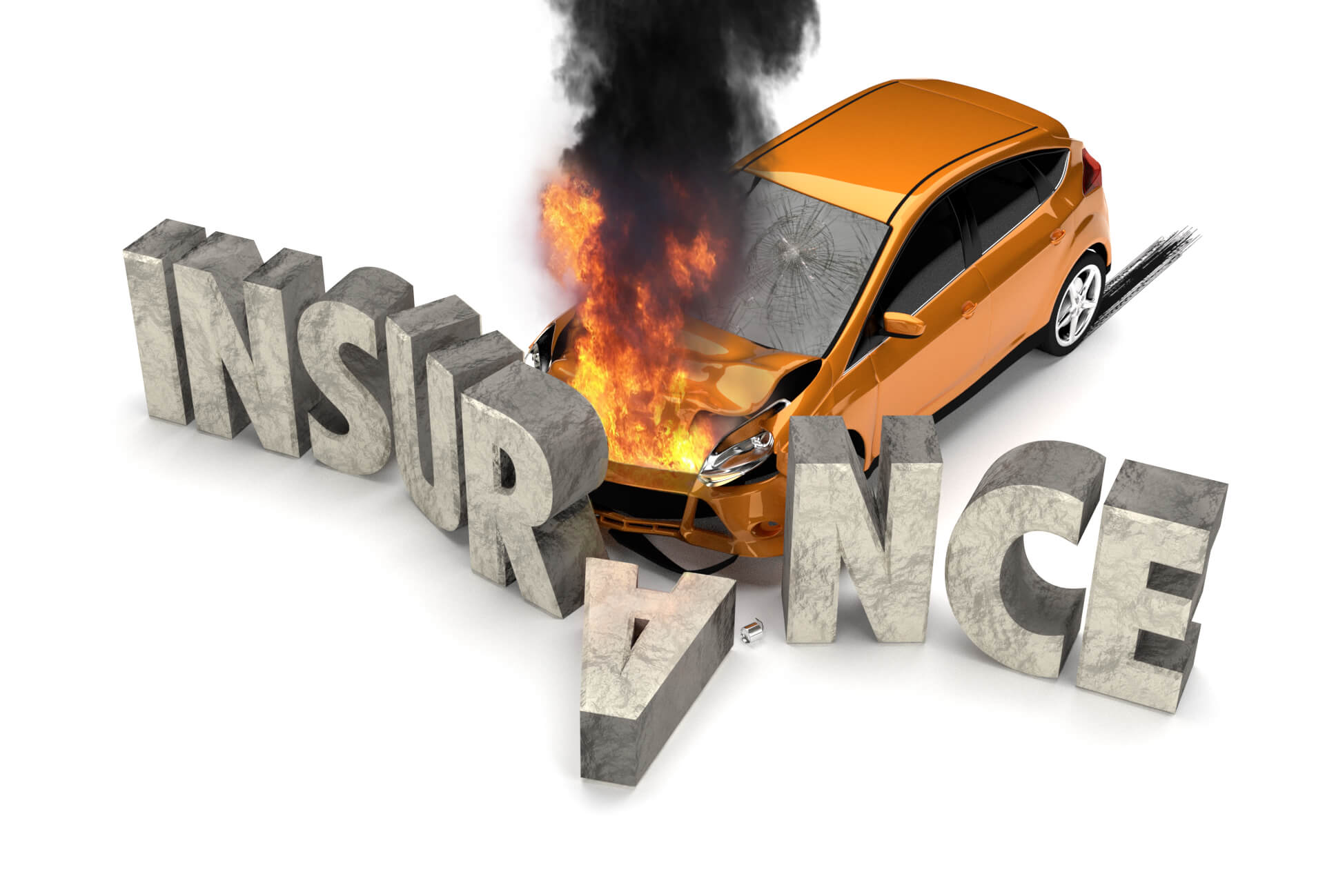 insurance auto insurance crashed car claim fire letters stone auto orange car insurance coverage concept compact
