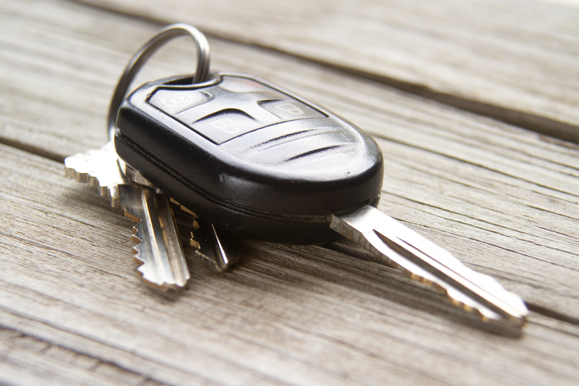 Car keys on weathered wood background