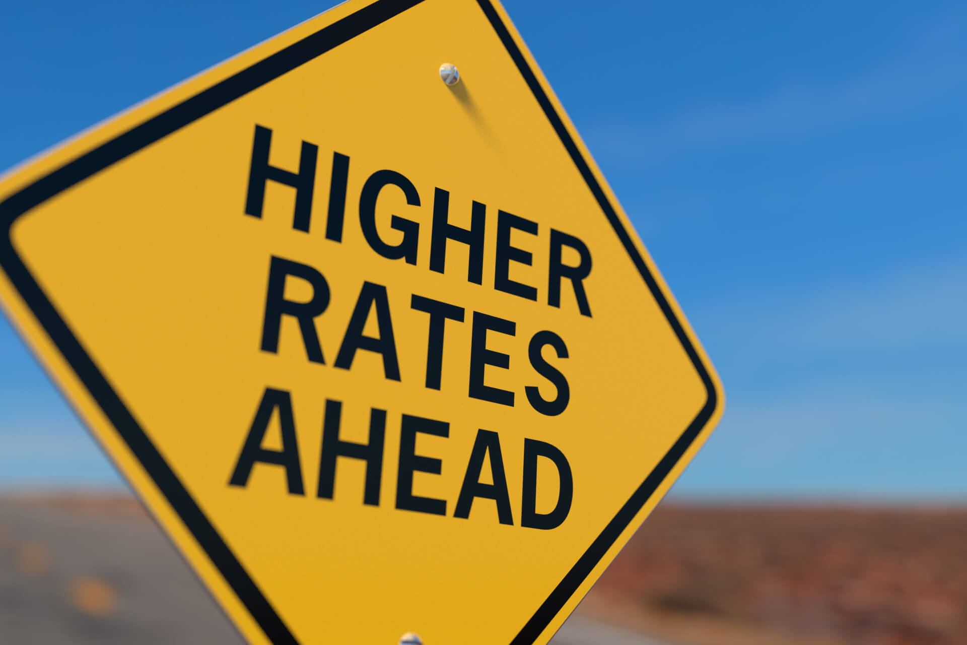 Yellow road sign reading Higher Rates Ahead symbolizing auto insurance price increases