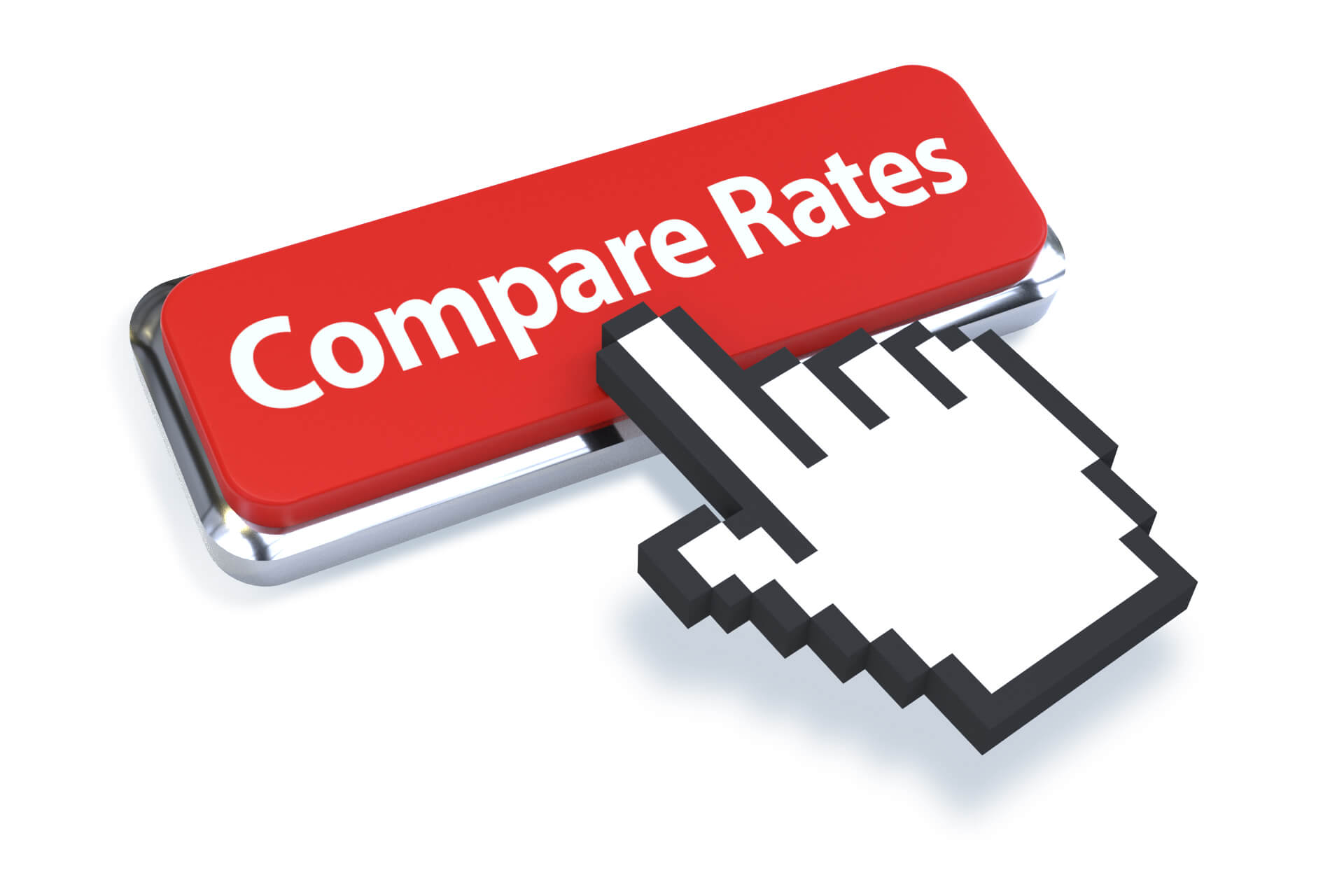 3D mouse pointer on red Compare Rates button isolated on white background