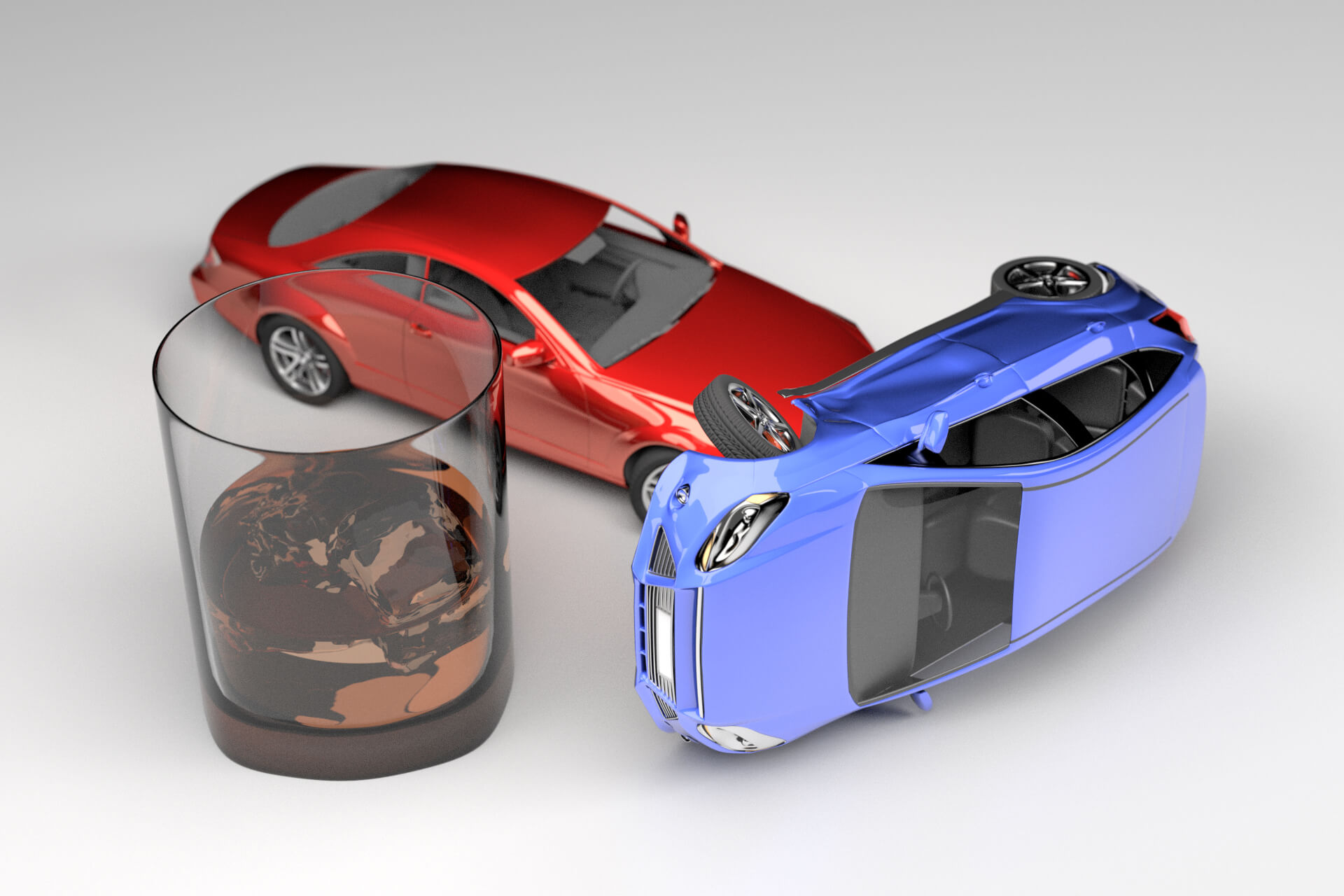 Car accident next to glass of whiskey from drunk driving