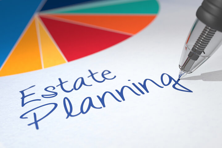 Colorful pie chart on paper with ballpoint pen writing Estate Planning beneath