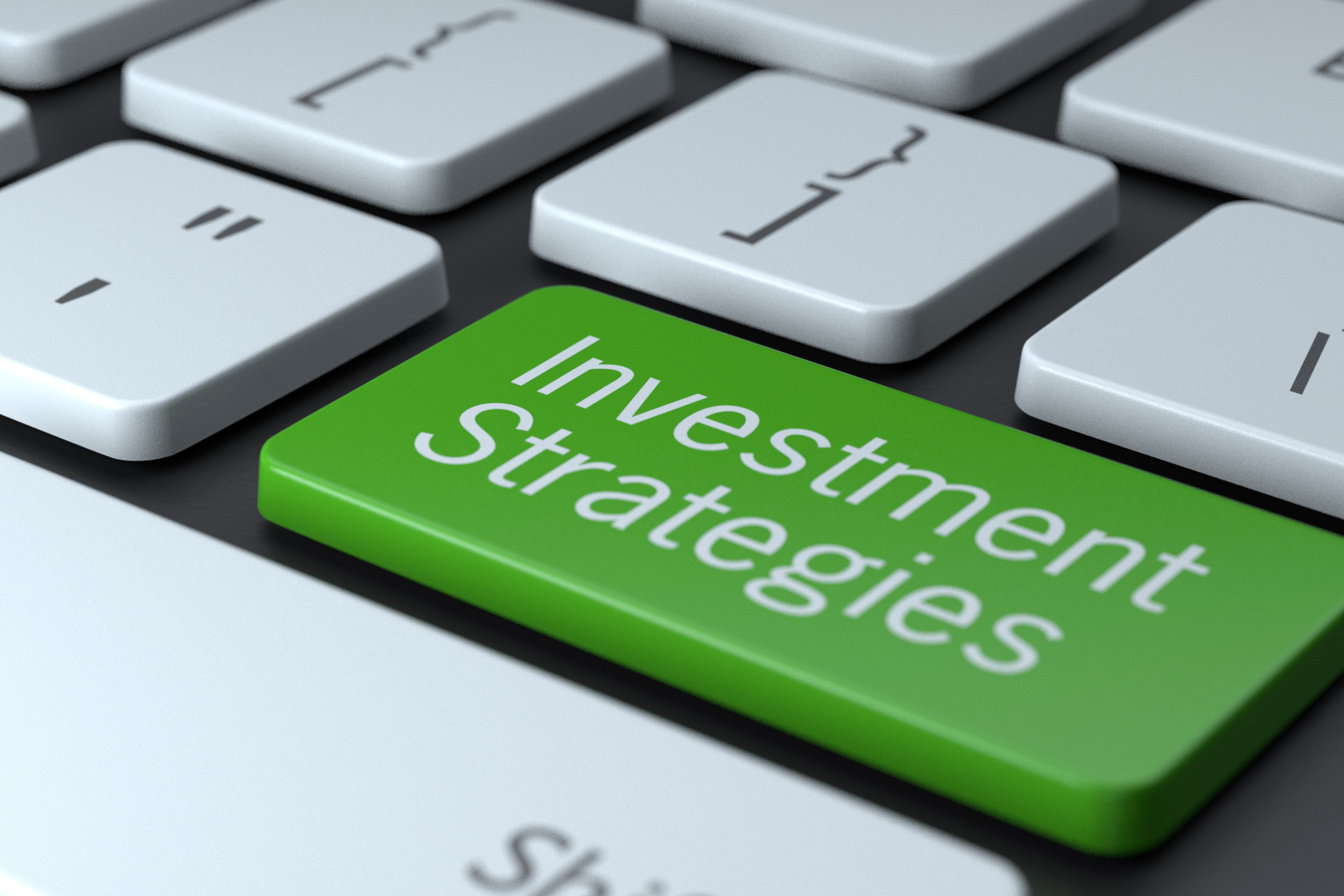 Computer keyboard with large green Investment Strategies key concept for online investment research