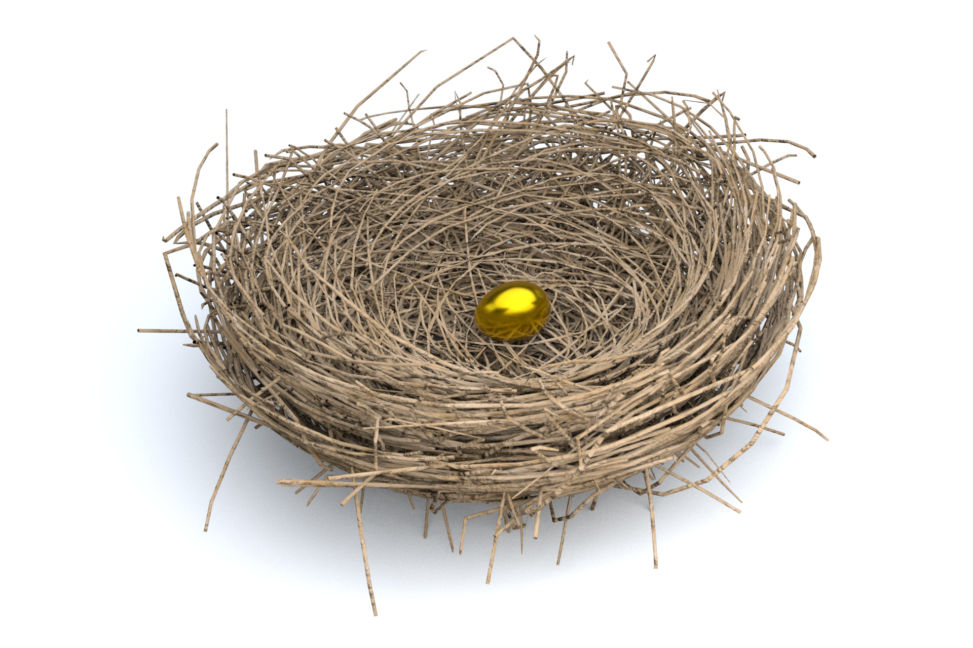 Concept image of small golden egg in nest representing not enough or lack of retirement savings