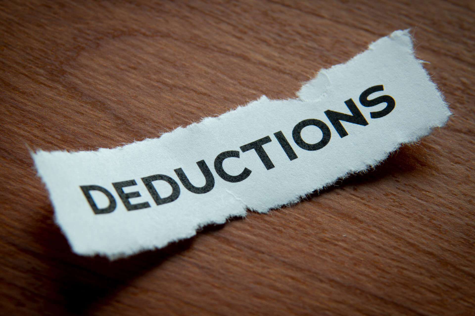 Torn piece of paper with Deductions text vignetted on woodgrain background